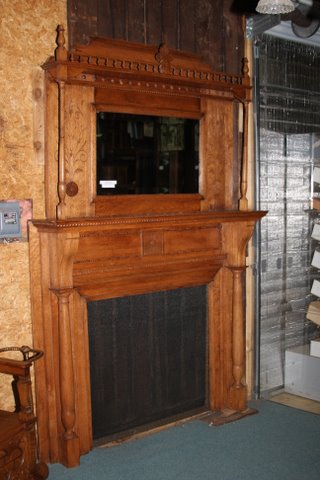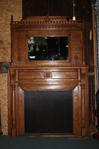 This Is A Quarter-Sawn Oak Mantle With Wonderful Spoon Carving. The Fireplace Features; A Spindle Top Shelve Gallery, Spiral Twist Upper Spindles Post, Tapered Oak Mantle Coulmns Dental Carvings, 1 3/4" Beveled Mirror, And Much More!